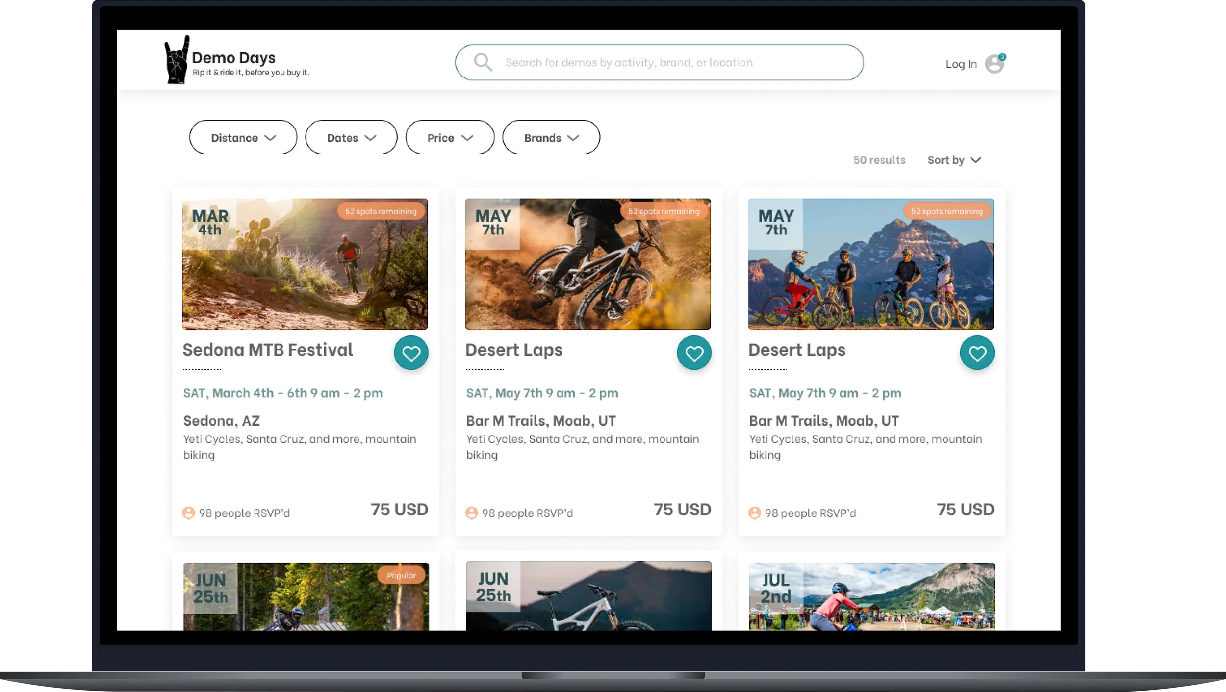While vendors are posting their own demos on their site, and that organization might post their event on site like Eventbrite, there isn’t currently a site specifically for bike demos where users can search across all different venues and brands.