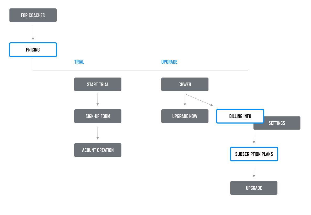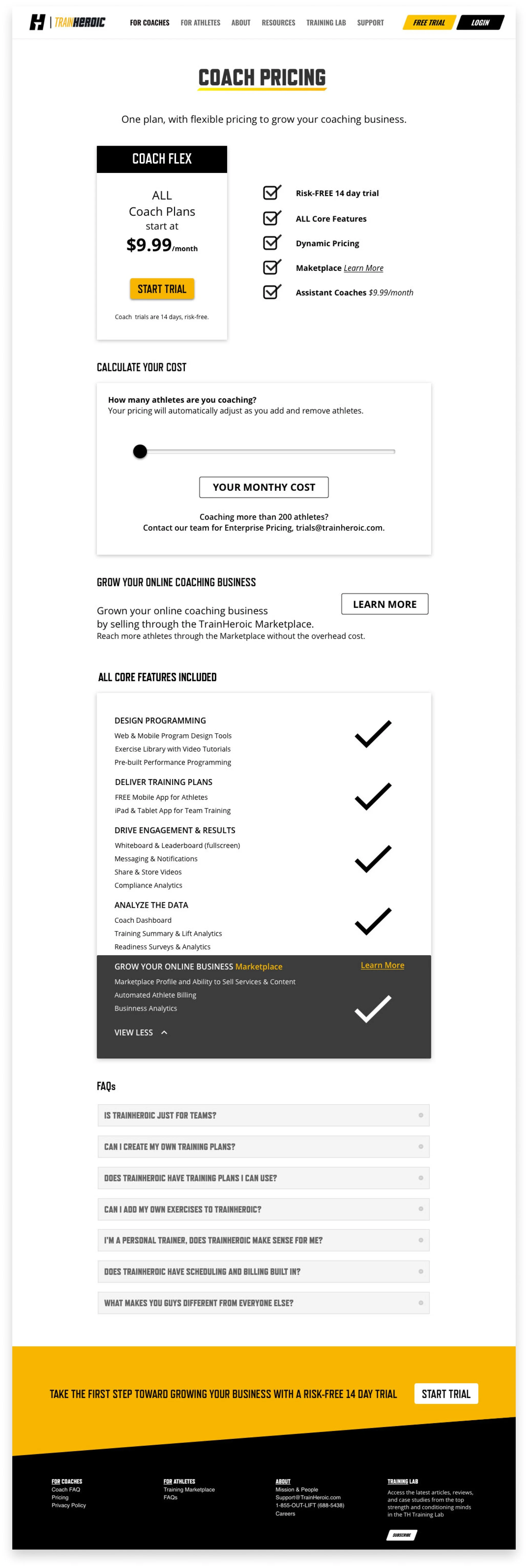 For background, our sales team had recently been dissolved. Getting coaches to begin a self-serve trial, along with answering some of their most frequently asked questions was an important outcome of the new pricing page.